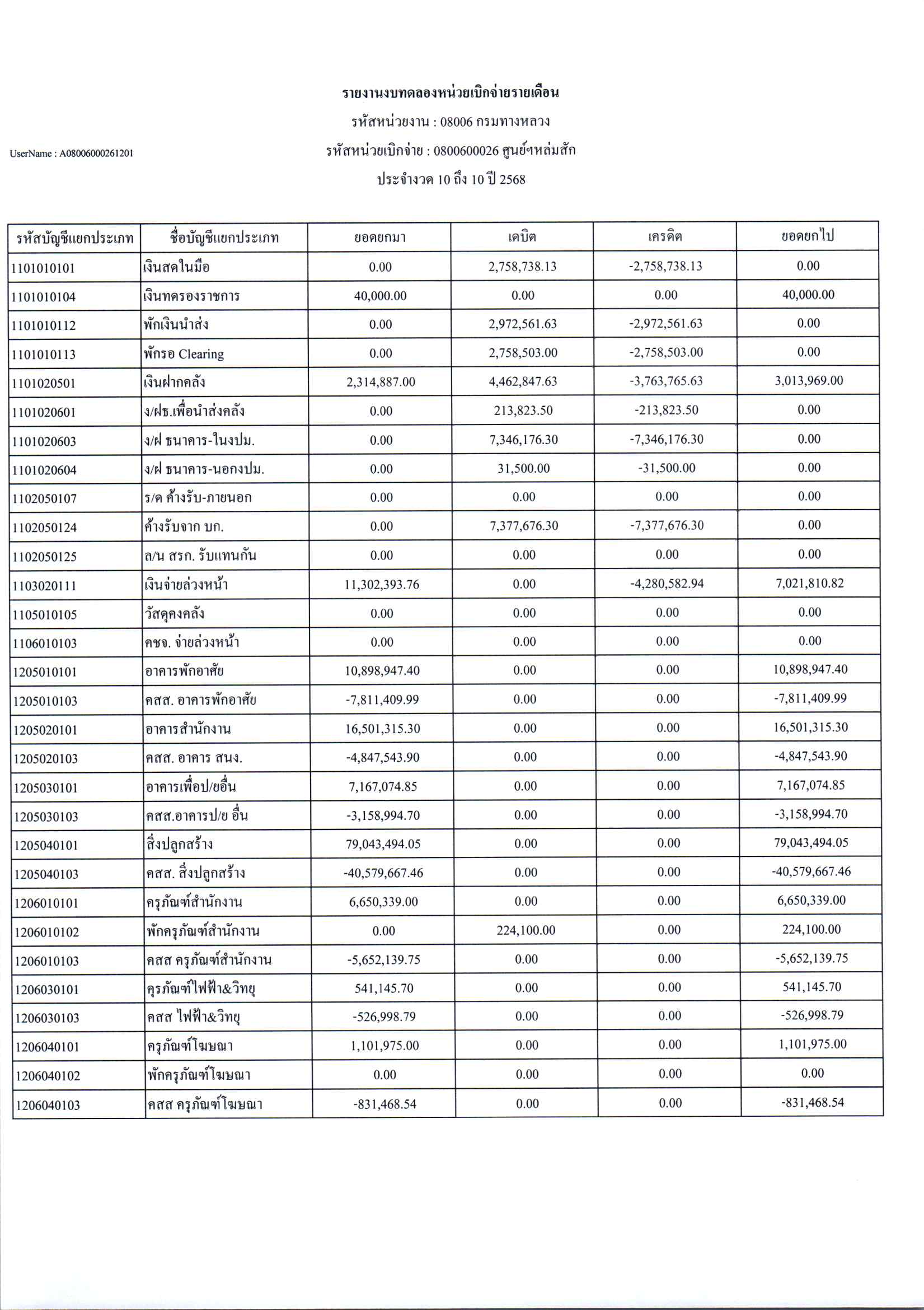 ประกาศเปิดเผยงบทดลองประจำเดือน ตุลาคม 2568 ปีงบประมาณ 2569