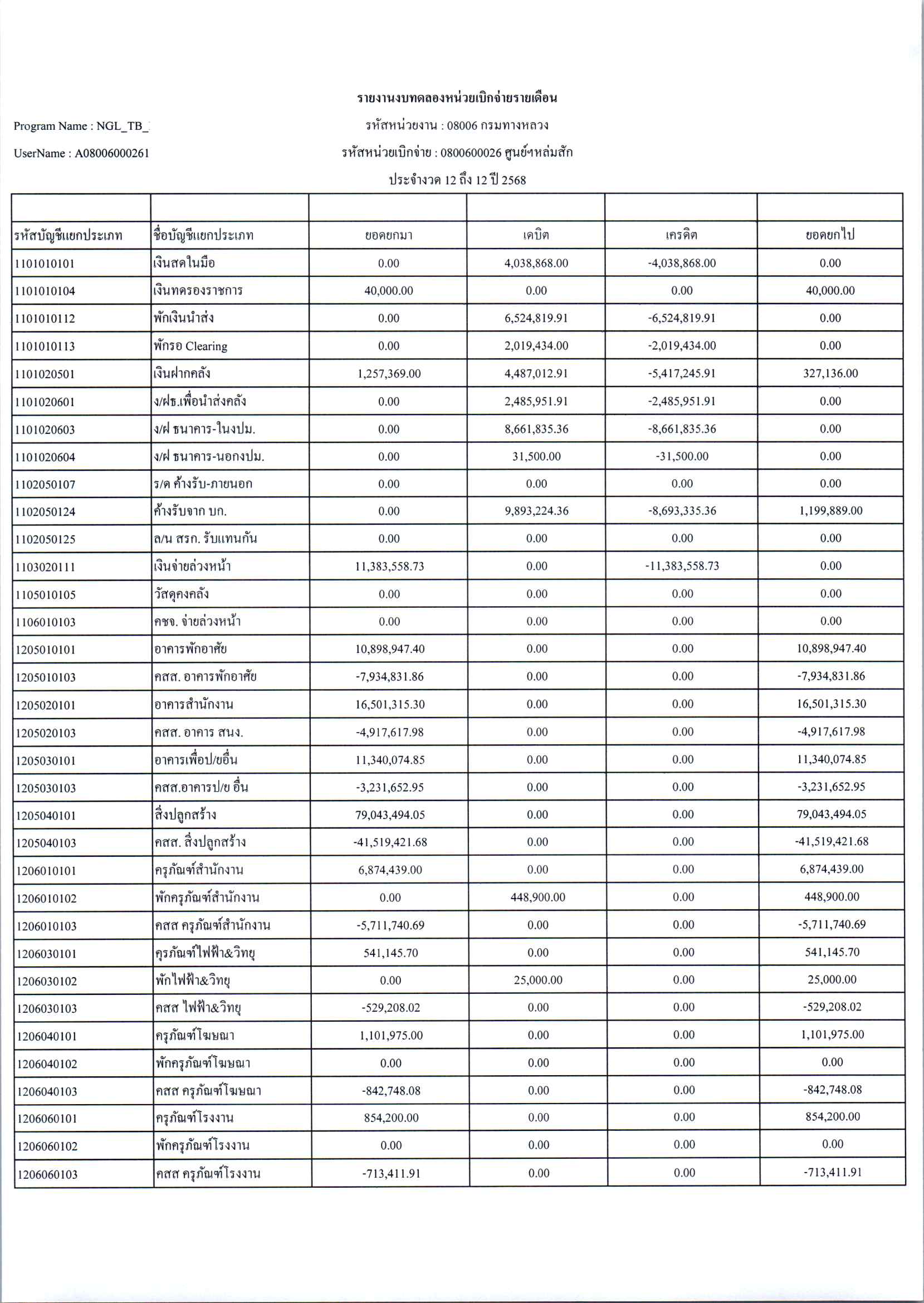 ประกาศเปิดเผยงบทดลองประจำเดือน ธันวาคม 2568 ปีงบประมาณ 2569