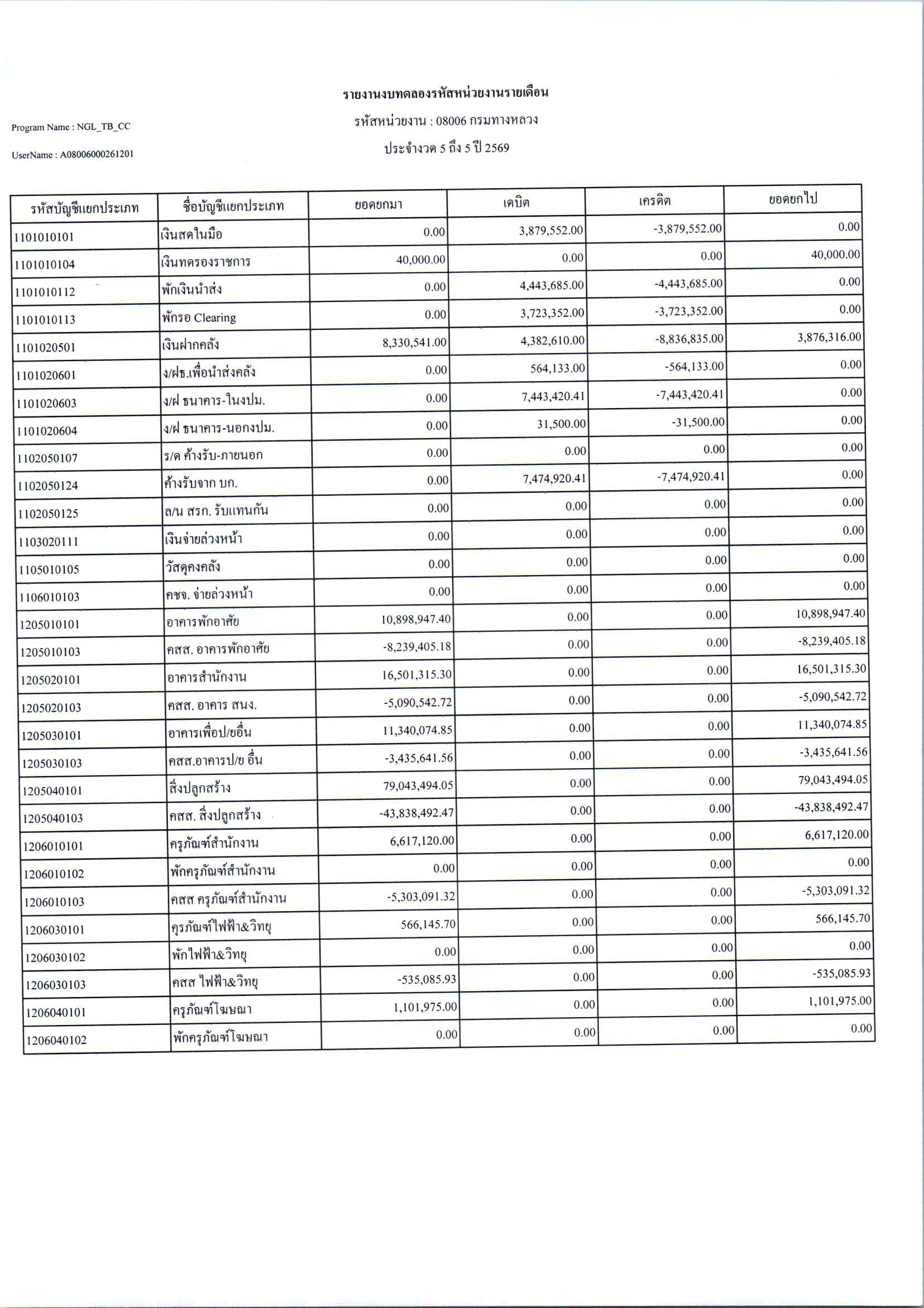 ประกาศเปิดเผยงบทดลองประจำเดือน กุมภาพันธ์ 2569 ปีงบประมาณ 2569